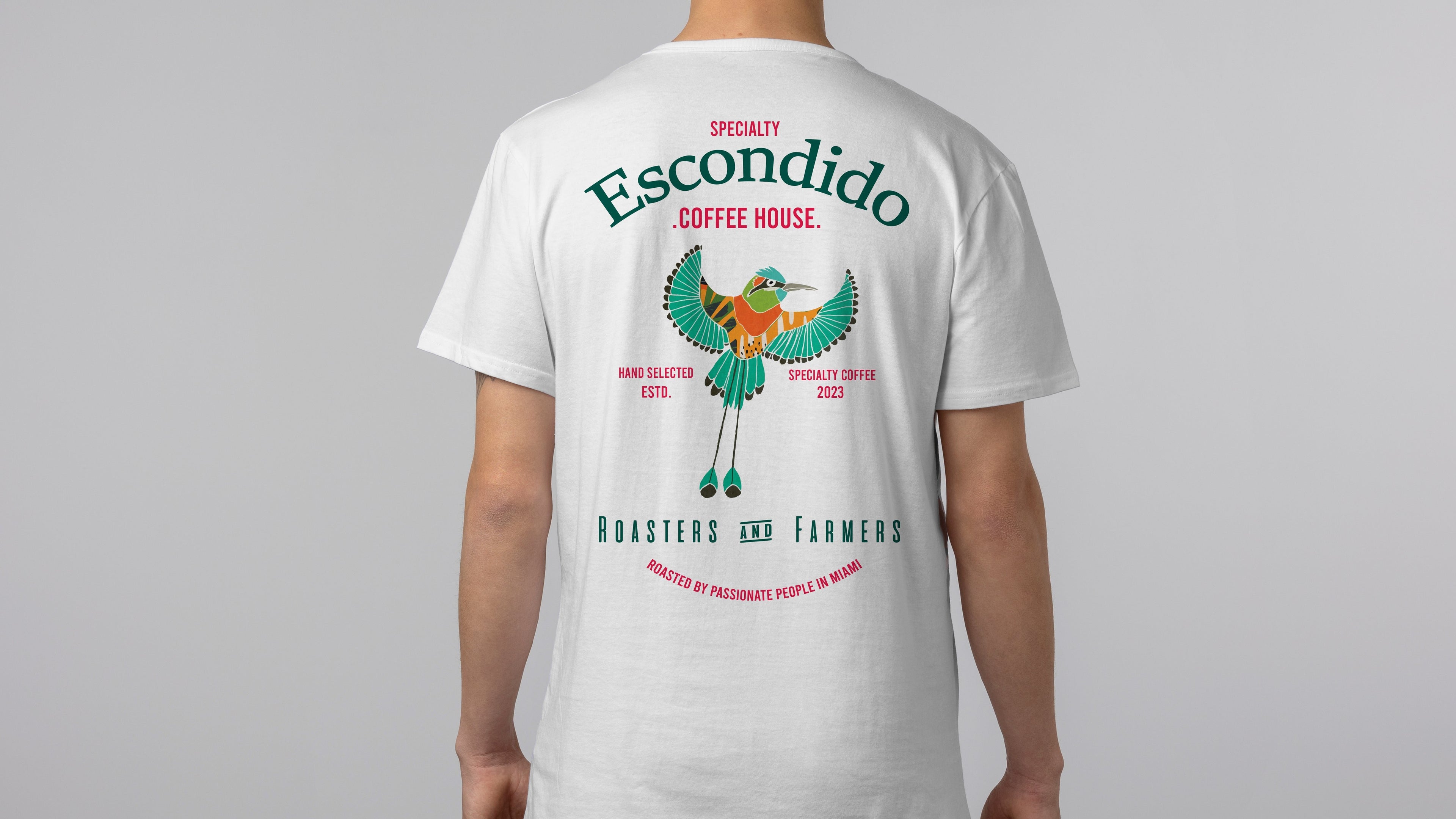 This 100% cotton T-shirt with ribbed crew neck has a regular fit. The garment is decorated with the Escondido Coffee House logo on the front and the iconic bird of El Salvador, the Torogoz, on the back.